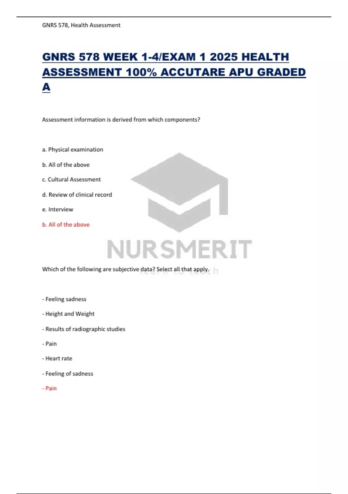 GNRS 578 WEEK 1-4/EXAM 1 2025 HEALTH