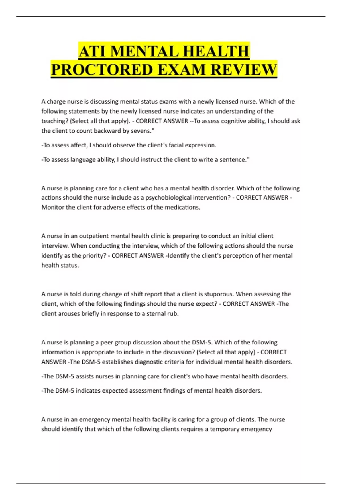identify as the priority? - CORRECT ANSWER -Identify the client's perception of her mental