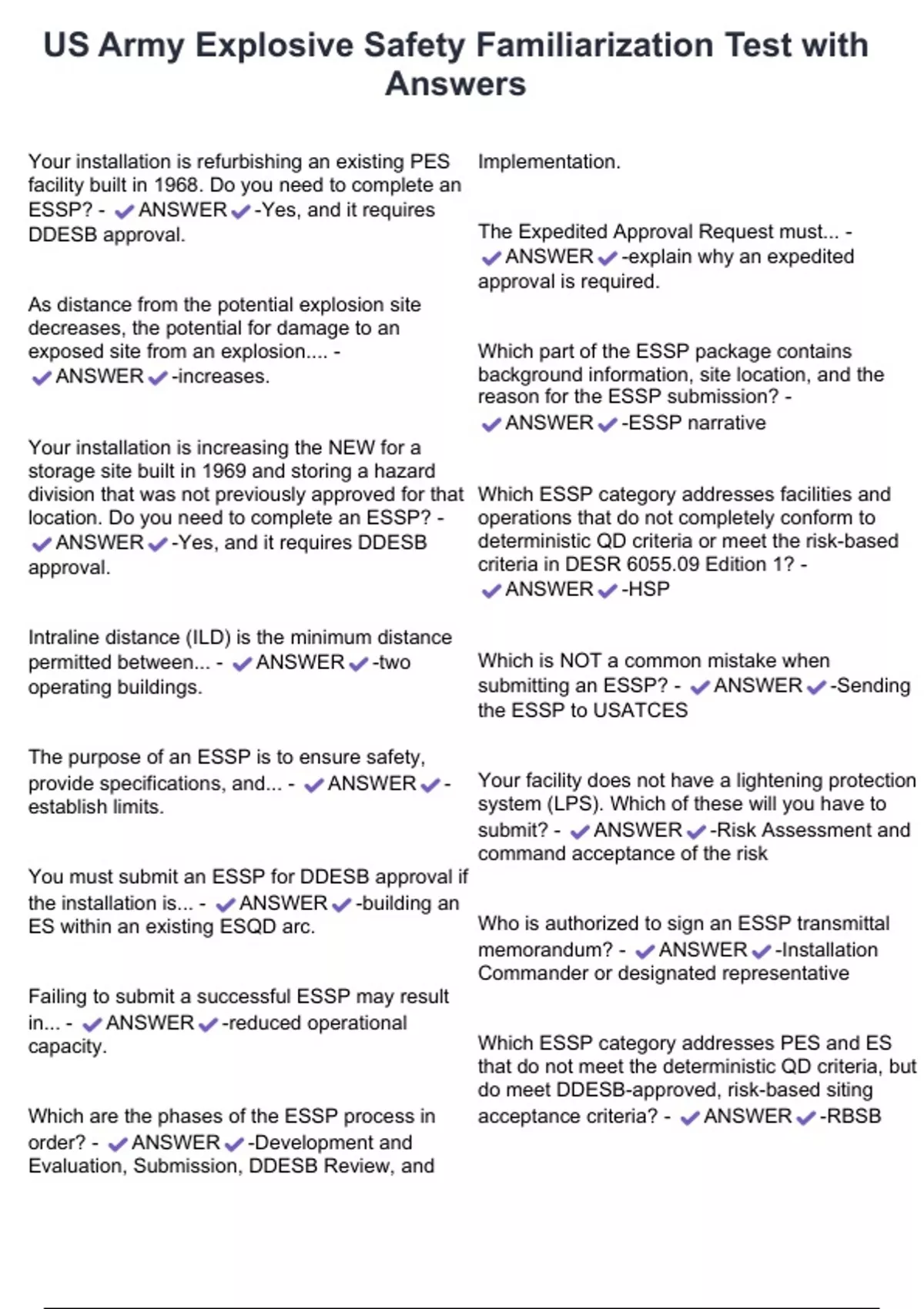 exposed site from an explosion.... - Which part of the ESSP package contains