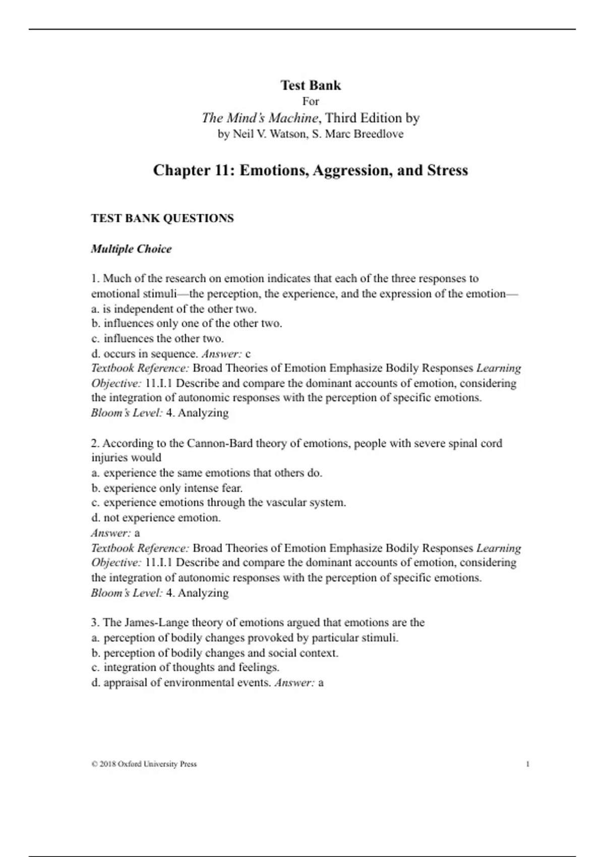 Test Bank For The Mind’s Machine, Third Edition by by Neil V. Watson, S. Marc Breedlove