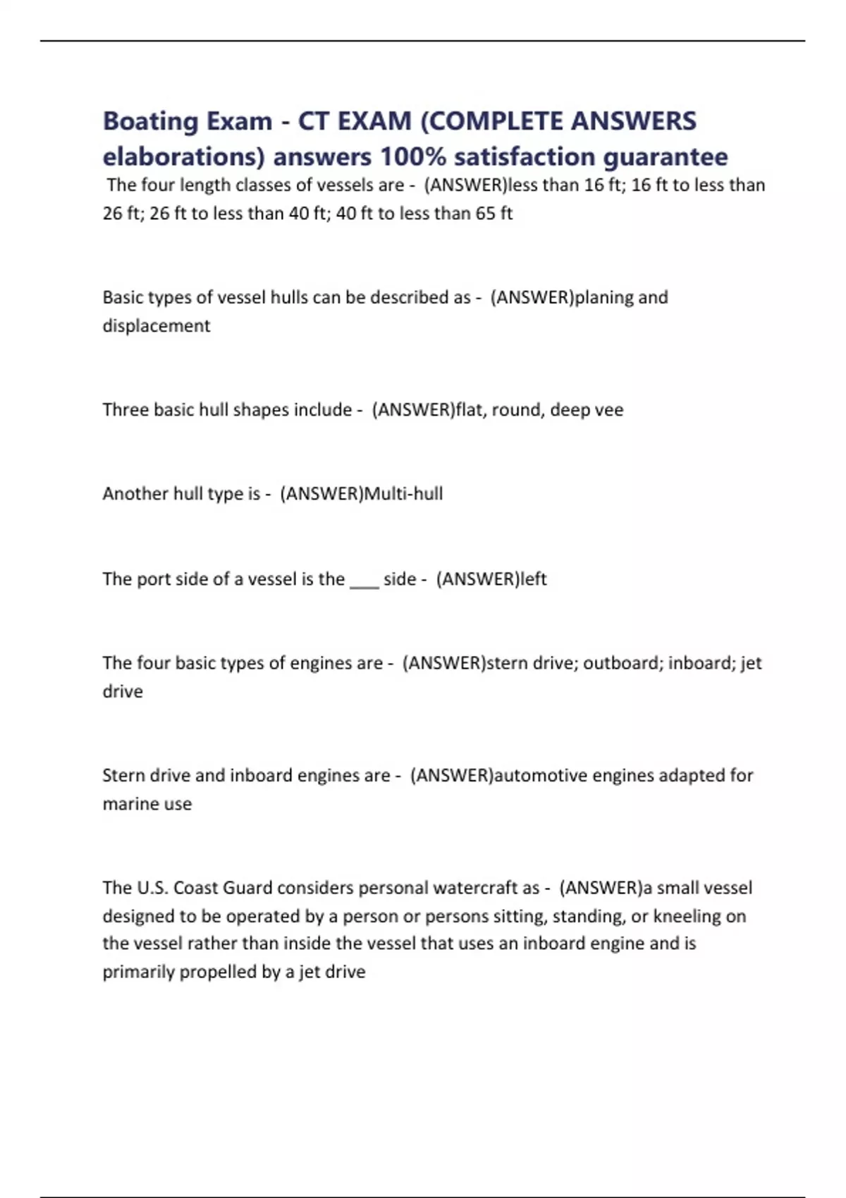 Boating Exam - CT EXAM (COMPLETE ANSWERS