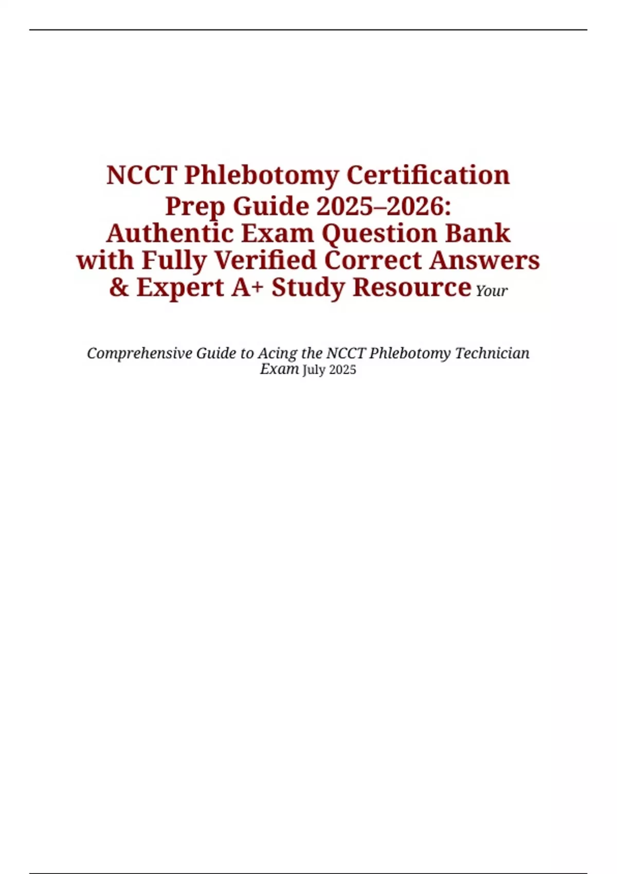 NCCT Phlebotomy Certification Prep Guide 2025–2026: Authentic Exam Question Bank with Fully Verified Correct Answers