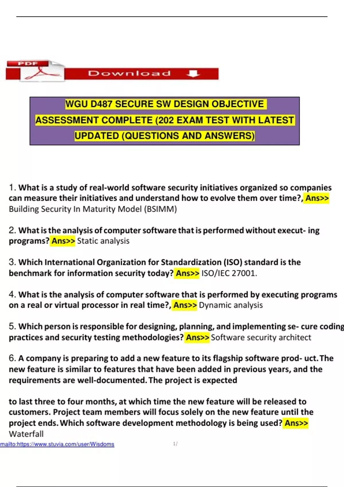WGU D487 SECURE SW DESIGN OBJECTIVE ASSESSMENT COMPLETE (202 EXAM TEST WITH LATEST UPDATED (QUESTIONS AND ANSWERS)