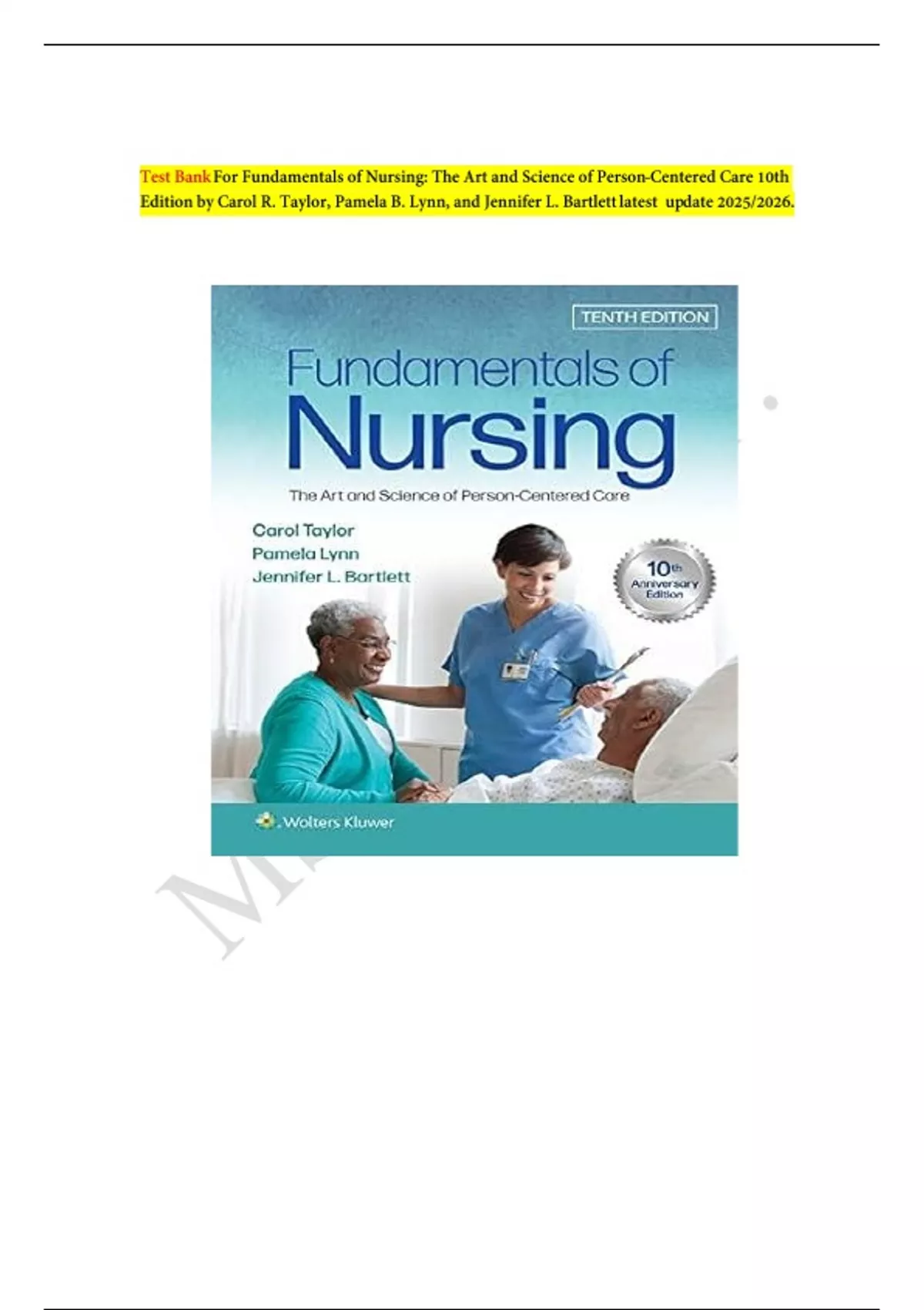 Test Bank For Fundamentals of Nursing: The Art and Science of Person-Centered Care 10th Edition by Carol R. Taylor, Pamela B. Lynn, and Jennifer L. Bartlett latest update 2025/2026.
