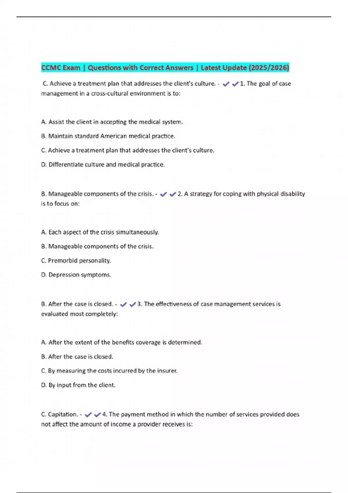 CCMC Exam | Questions with Correct Answers | Latest Update (2025/2026)