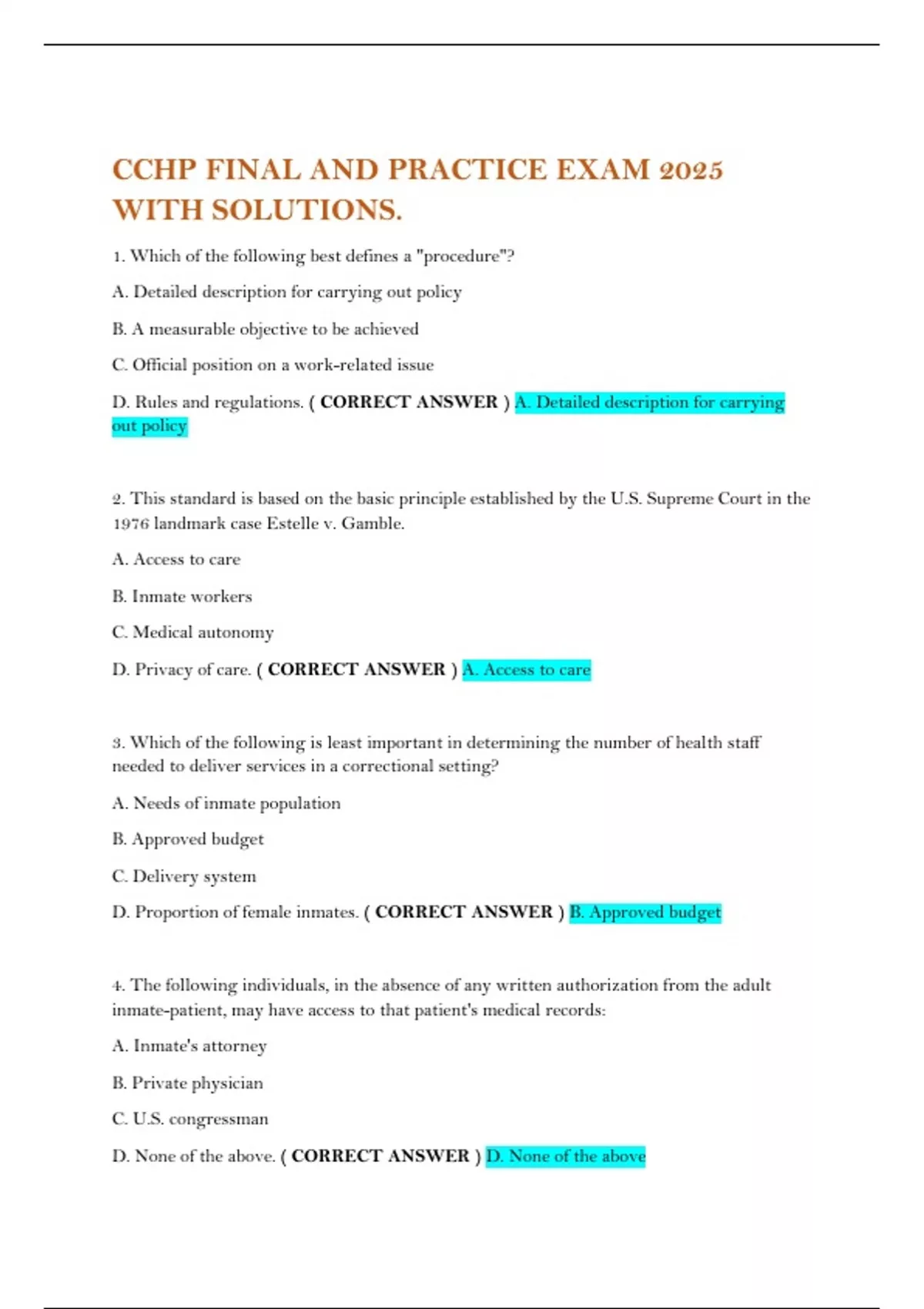 Health Care standards based?. ( CORRECT ANSWER ) Inmates must have access to care