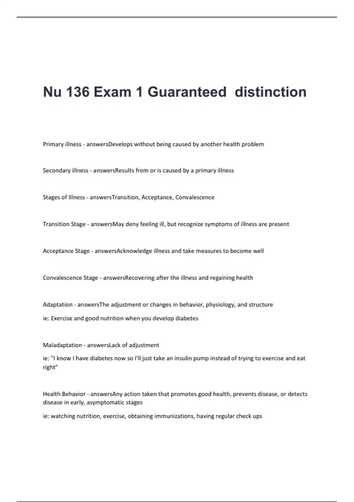 Nu 136 Exam 1 Guaranteed distinction