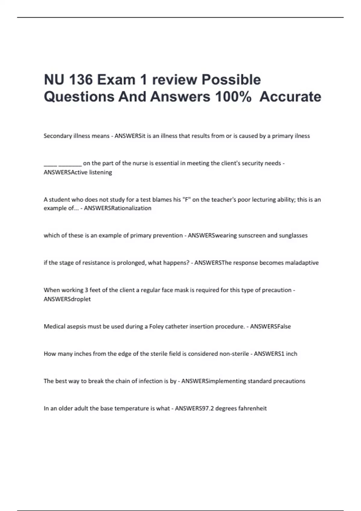 NU 136 Exam 1 review Possible Questions And Answers 100% Accurate
