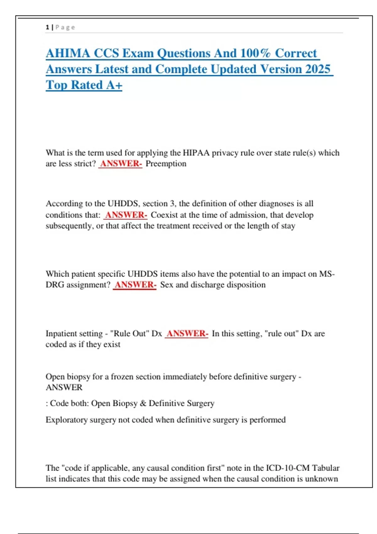 AHIMA CCS Exam Questions And 100% Correct