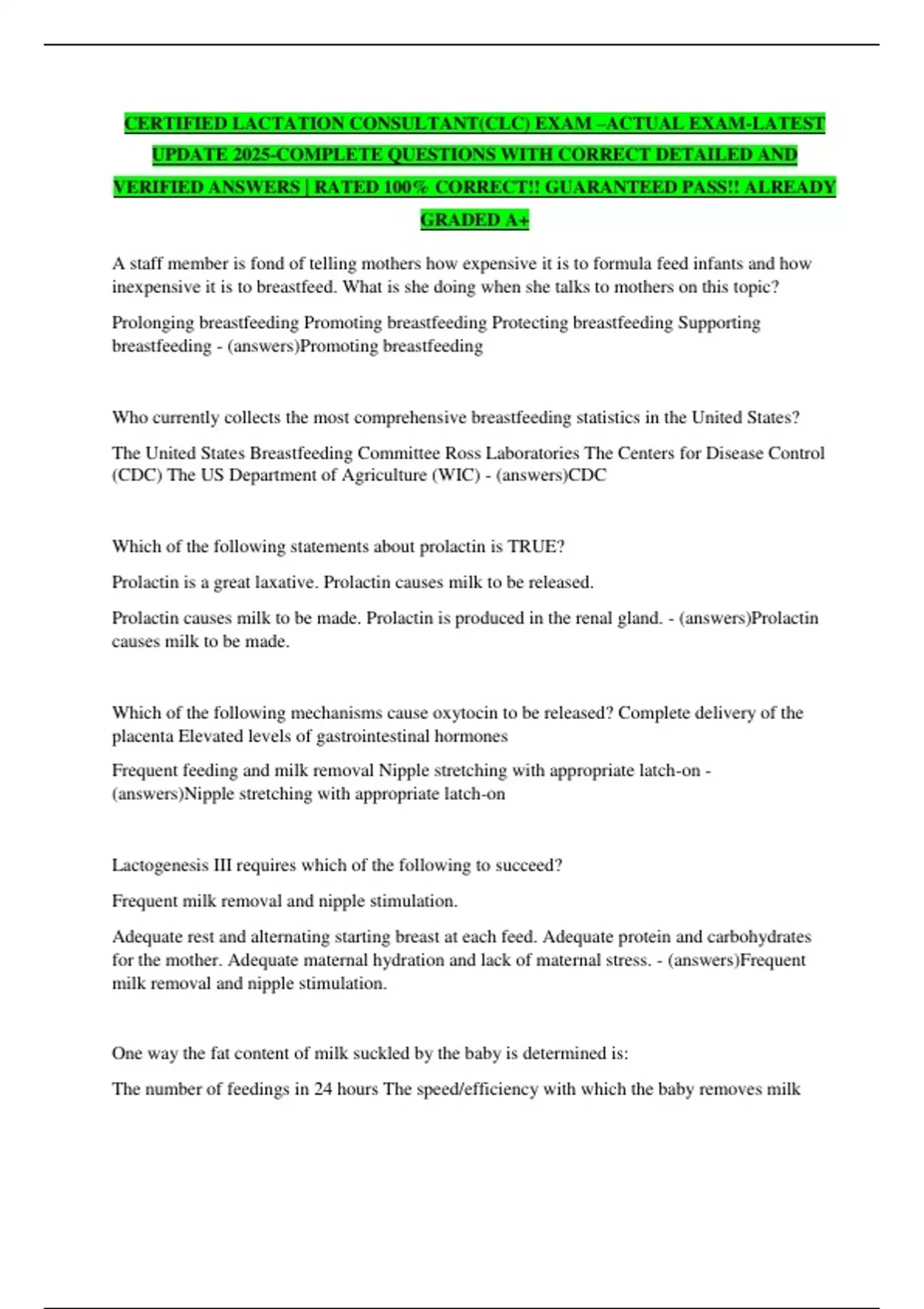 breastfeeding - (answers)Promoting breastfeeding