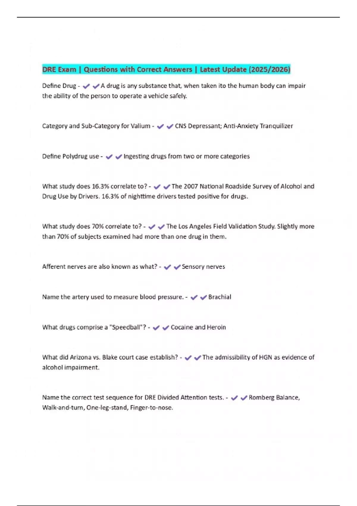 DRE Exam | Questions with Correct Answers | Latest Update (2025/2026)