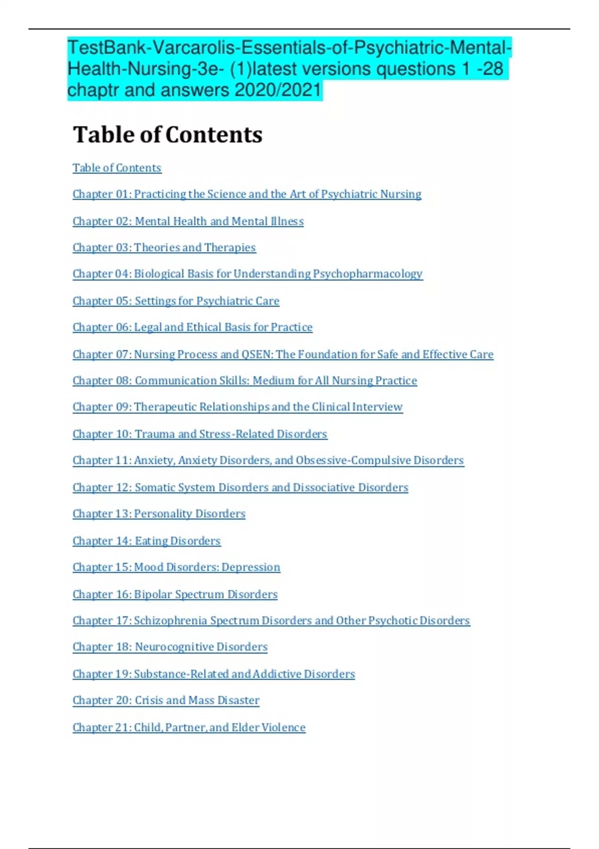 , TestBank-Varcarolis-Essentials-of-Psychiatric-Mental-