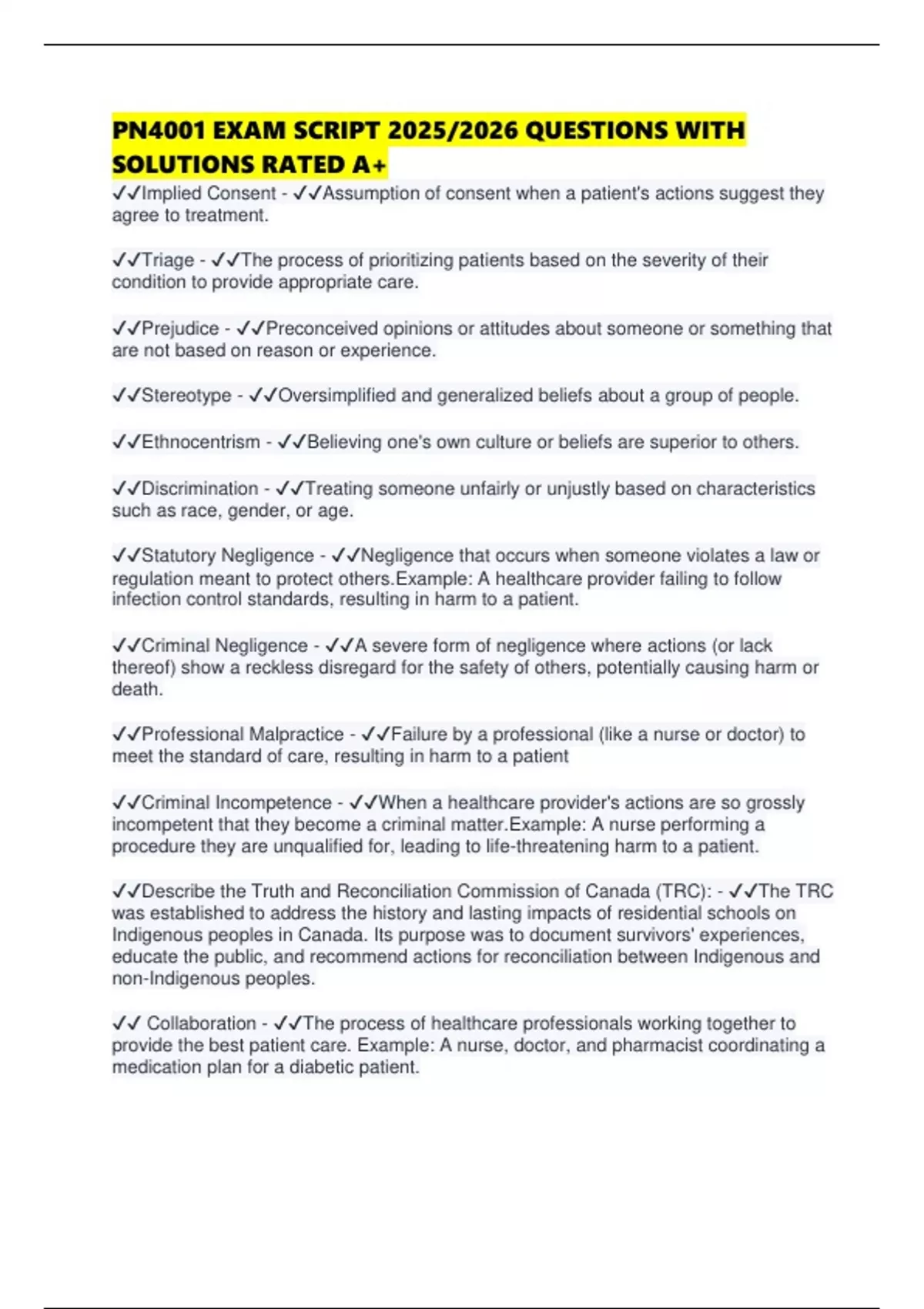 PN4001 EXAM SCRIPT 2025/2026 QUESTIONS WITH SOLUTIONS RATED A+