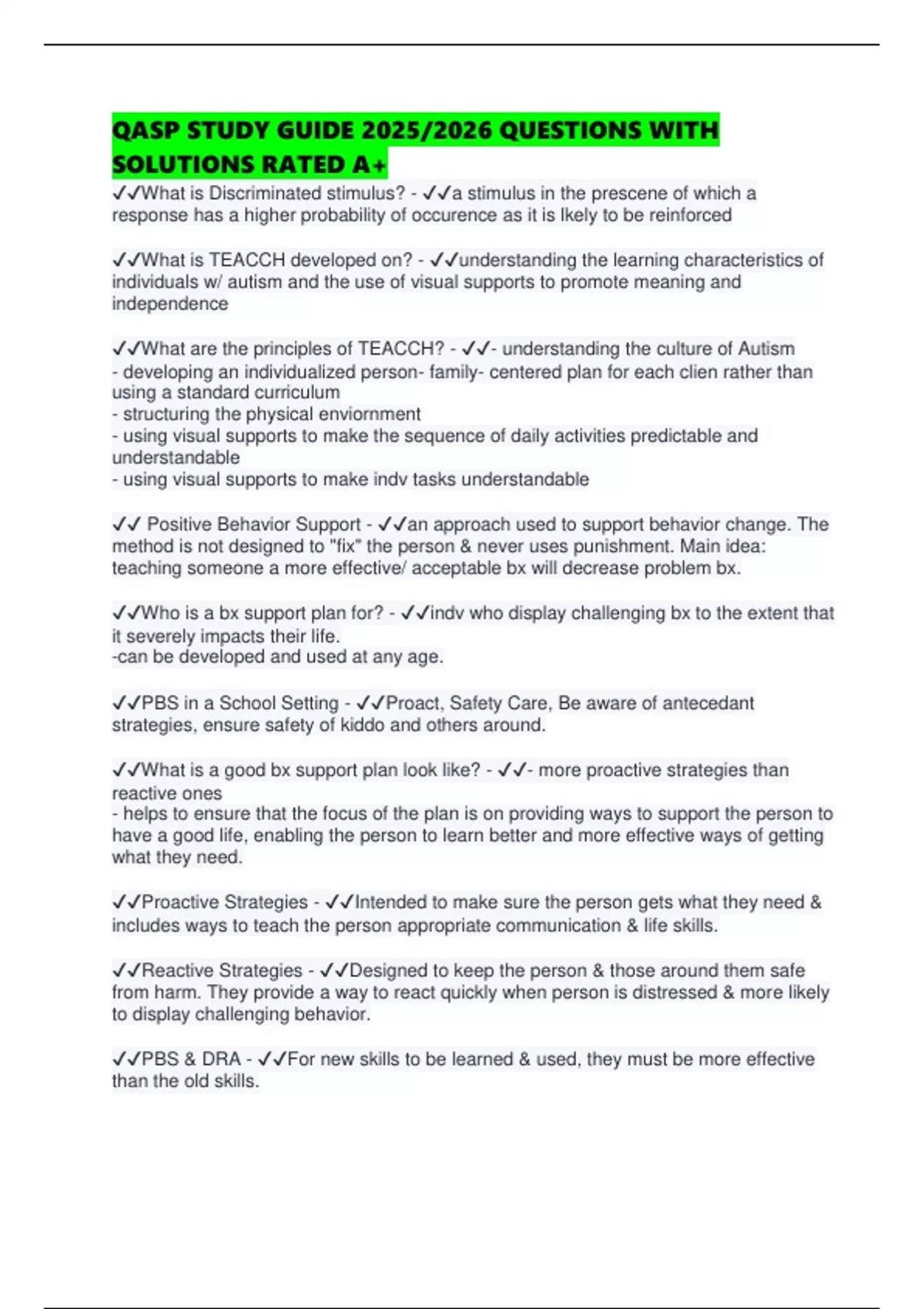 QASP STUDY GUIDE 2025/2026 QUESTIONS WITH