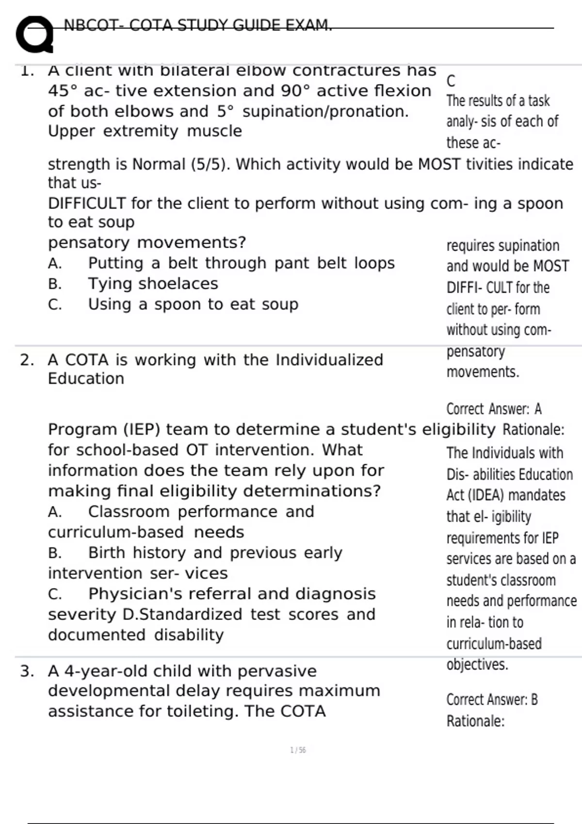 , NBCOT- COTA STUDY GUIDE EXAM.