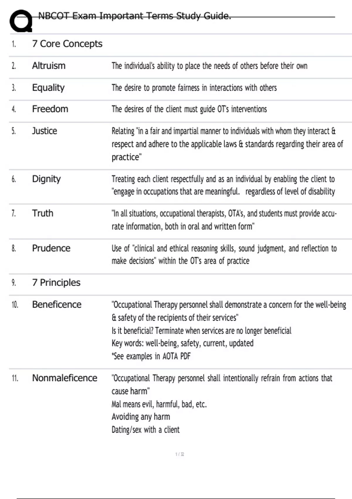 , NBCOT Exam Important Terms Study Guide.