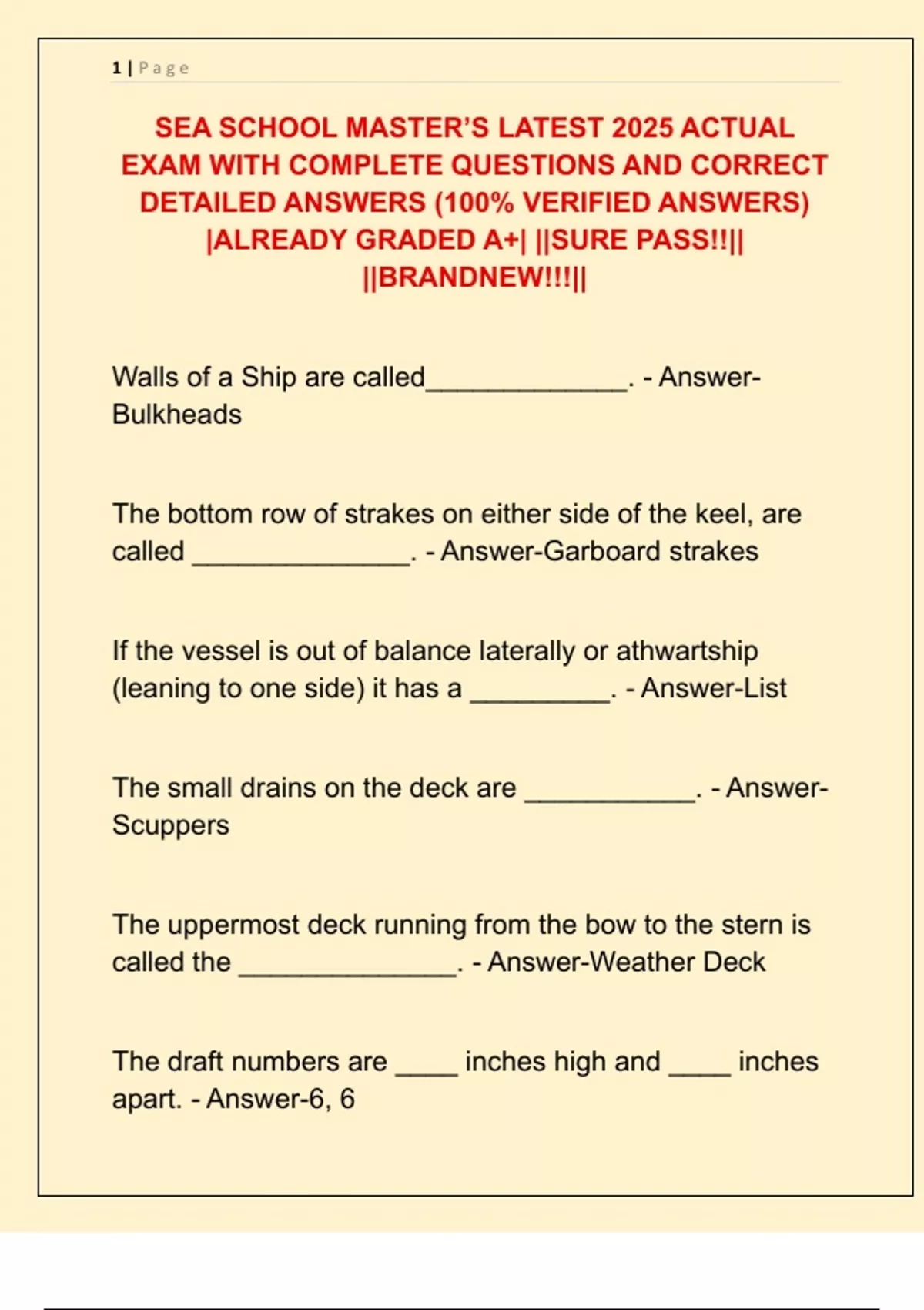 SEA SCHOOL MASTER’S LATEST 2025 ACTUAL EXAM WITH COMPLETE QUESTIONS AND CORRECT DETAILED ANSWERS (100% VERIFIED ANSWERS) |ALREADY GRADED A+| ||SURE PASS!!|| ||BRANDNEW!!!||