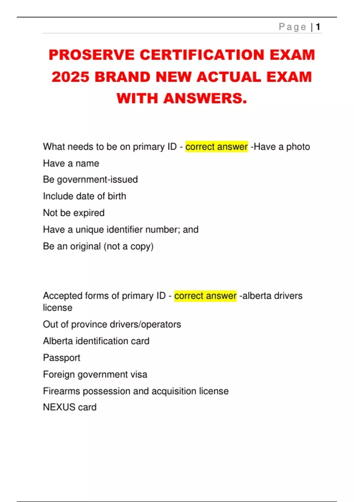 PROSERVE CERTIFICATION EXAM