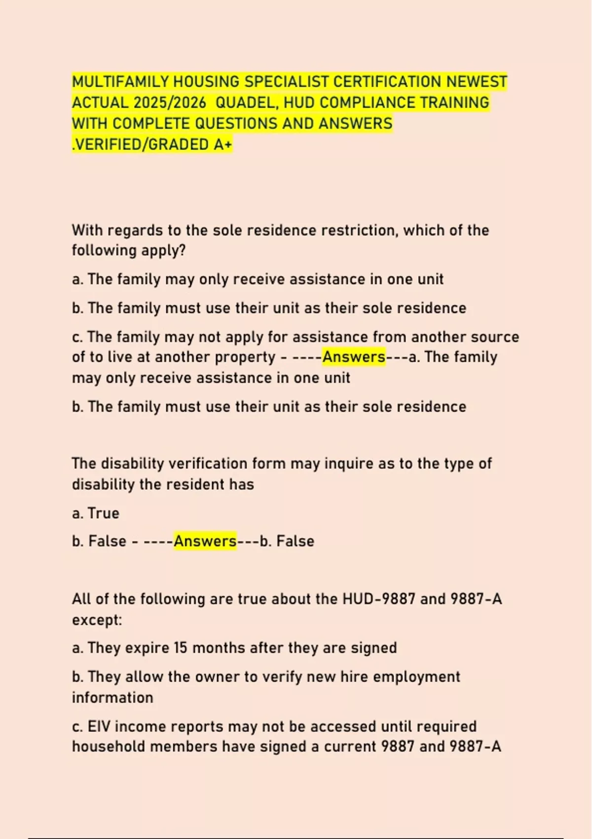 ACTUAL 2025/2026 QUADEL, HUD COMPLIANCE TRAINING