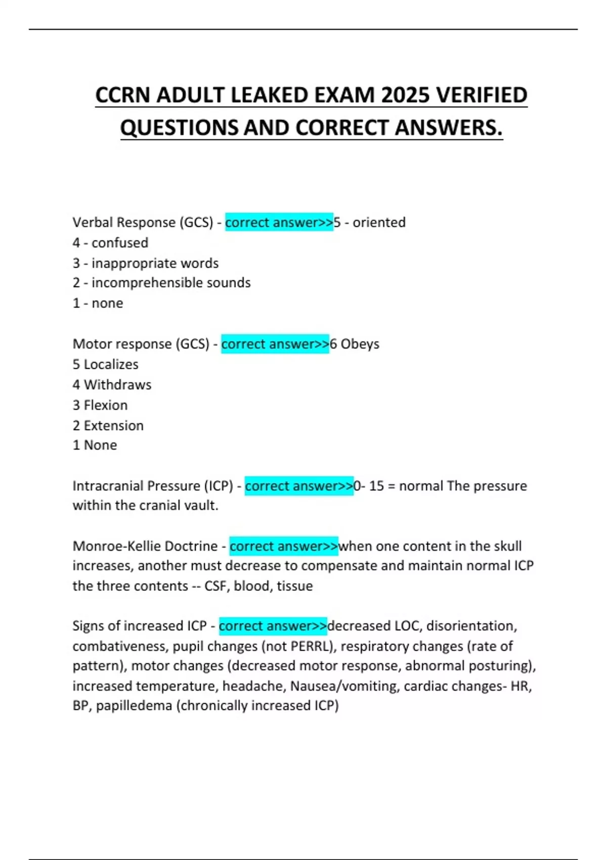 CCRN ADULT LEAKED EXAM 2025 VERIFIED