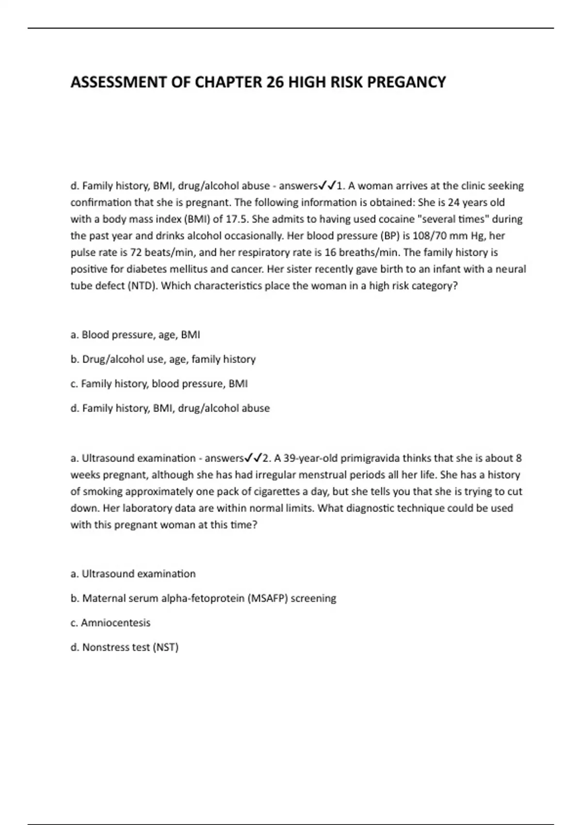 a. Ultrasound examination - answers✔✔2. A 39-year-old primigravida thinks that she is about 8