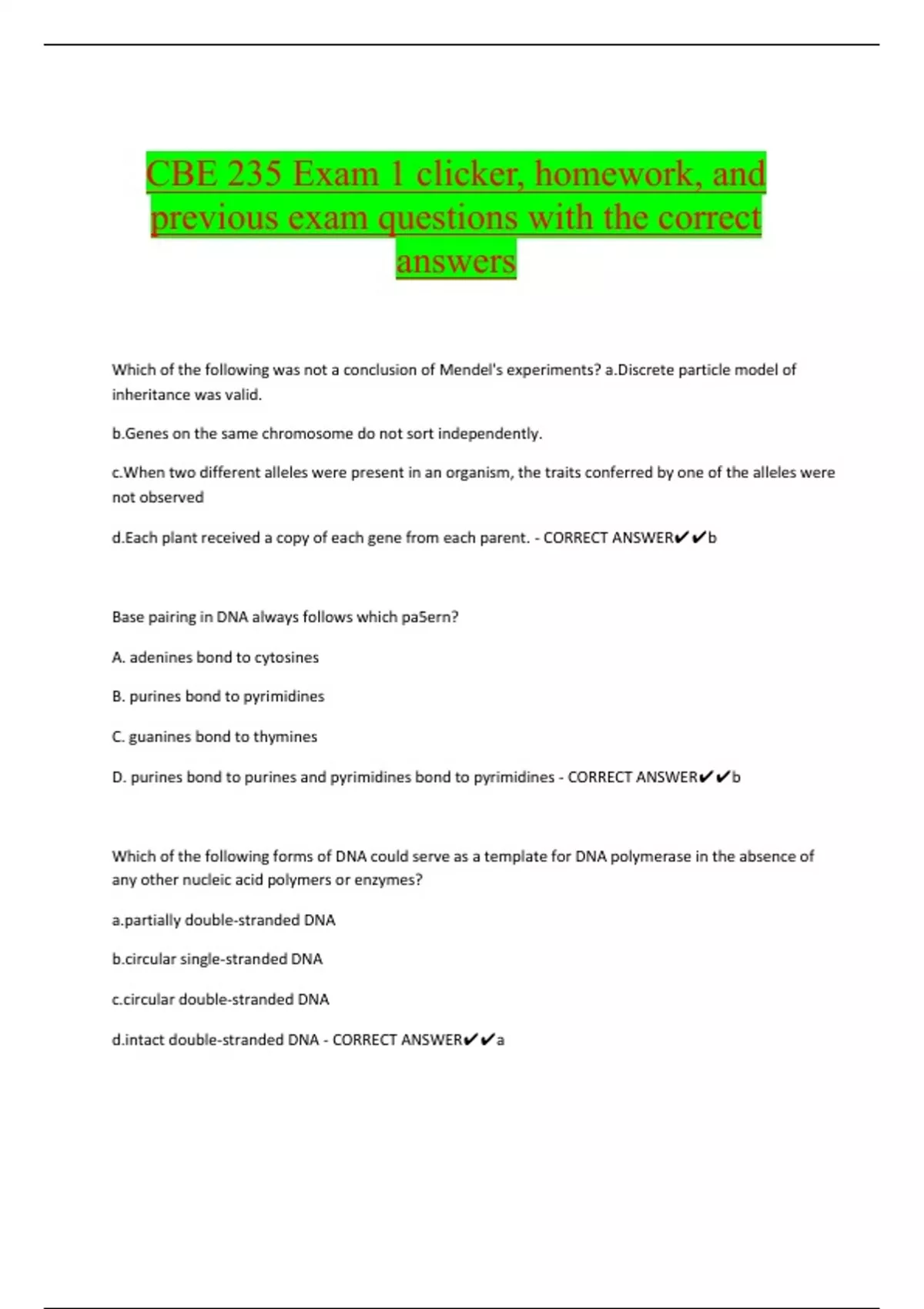 d.Each plant received a copy of each gene from each parent. - CORRECT ANSWER✔✔b