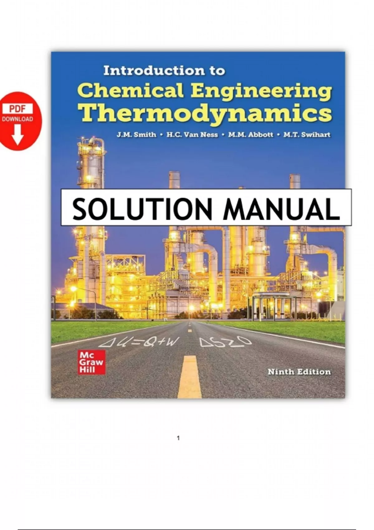 Instant download PDF of the Solutions Manual for Introduction to Chemical Engineering Thermodynamics, 9th Edition by J.M. Smith. This all-inclusive manual features detailed, step-by-step solutions to every problem from Chapters 1 to 16, covering key topics such as the first and second laws, phase equilibria, thermodynamic properties, chemical reaction equilibria, and refrigeration cycles. An essential study aid for chemical engineering students tackling core thermodynamics coursework and exams.