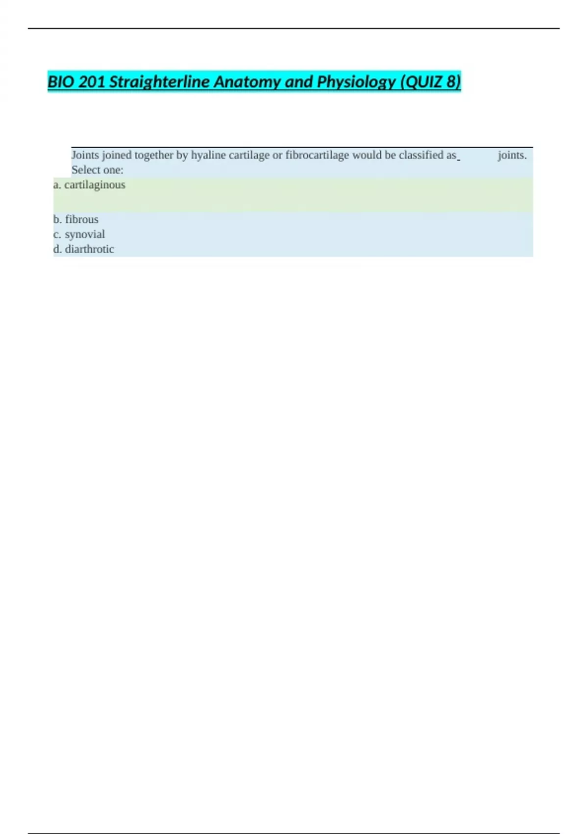 BIO 201 Straighterline Anatomy And Physiology