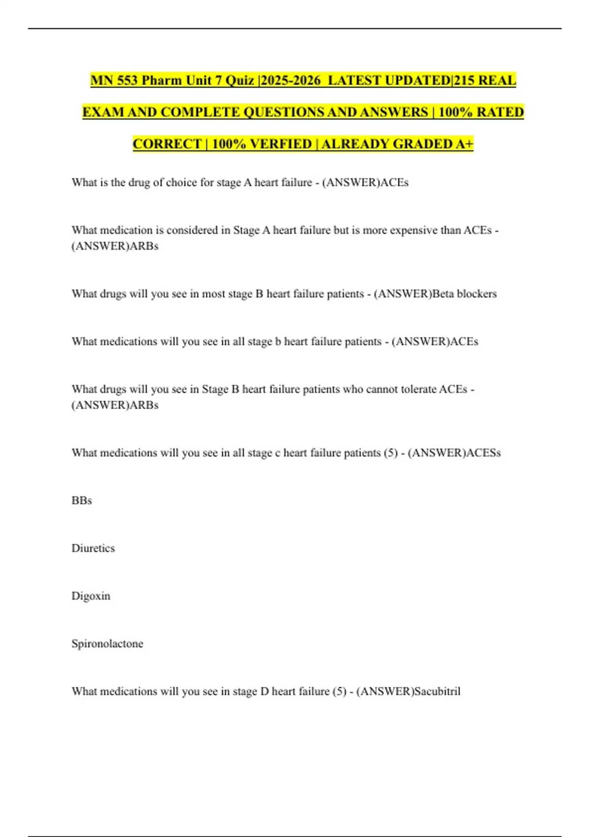 MN 553 Pharm Unit 7 Quiz | LATEST UPDATED|215 REAL EXAM AND COMPLETE QUESTIONS AND ANSWERS | 100% RATED CORRECT | 100% VERFIED | ALREADY GRADED A+