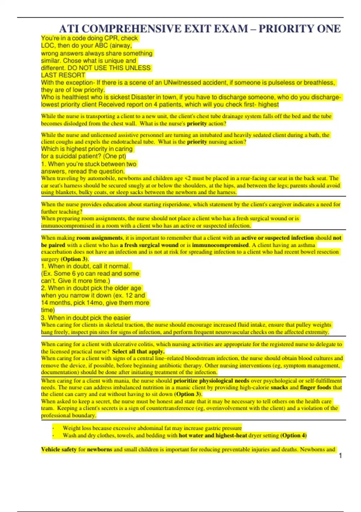 , ATI COMPREHENSIVE EXIT EXAM – PRIORITY ONE