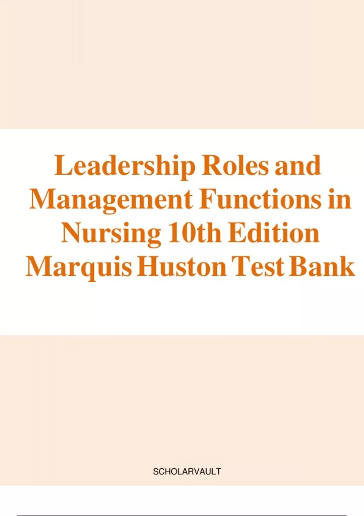 TEST BANK FOR LEADERSHIP ROLES AND MANAGEMENT FUNCTIONS AND NURSING 10TH EDITION MARQUIS HUSTON COMPLETE GUIDE A+
