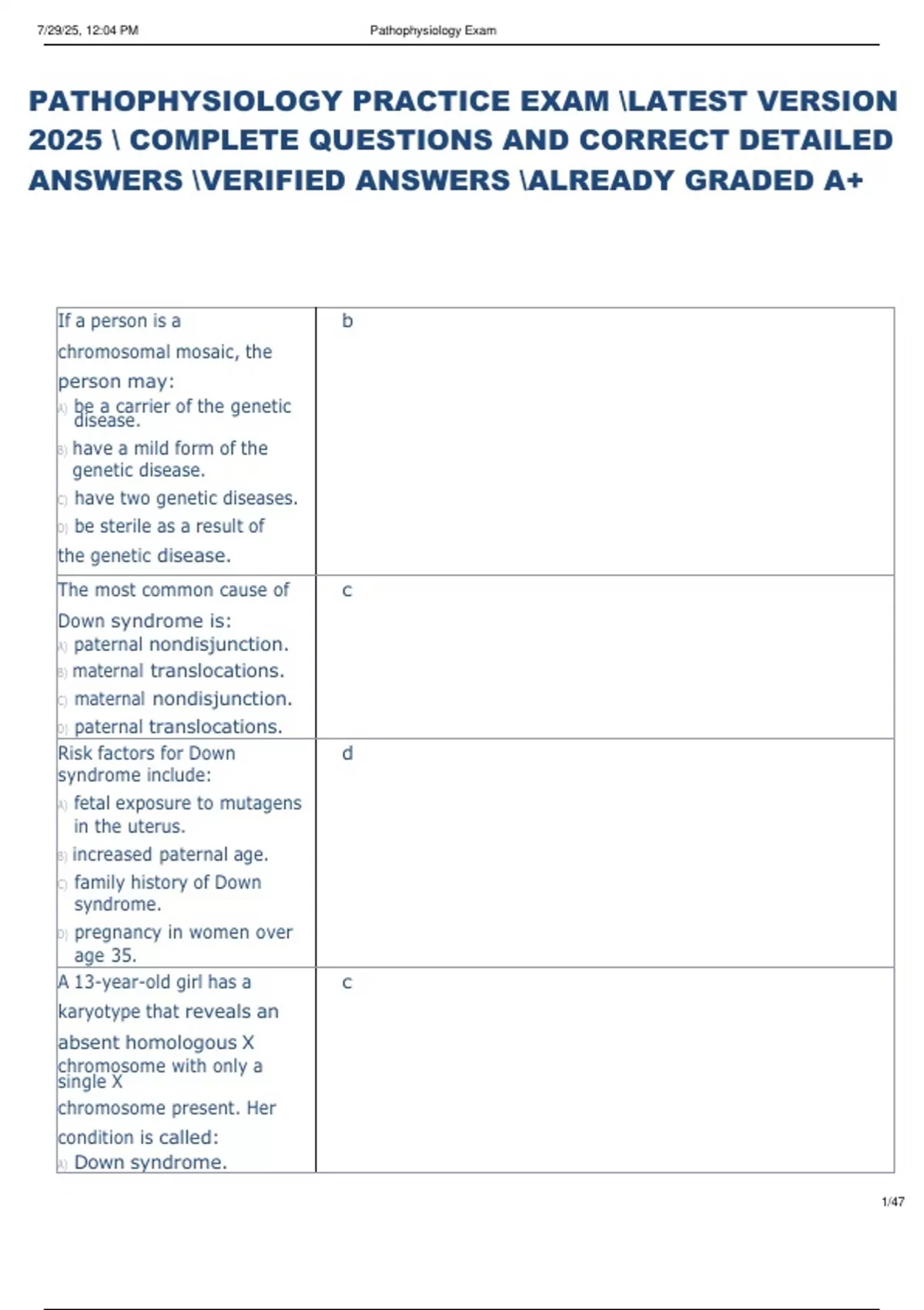 , 7/29/25, 12:15 PM Pathophysiology Exam 1