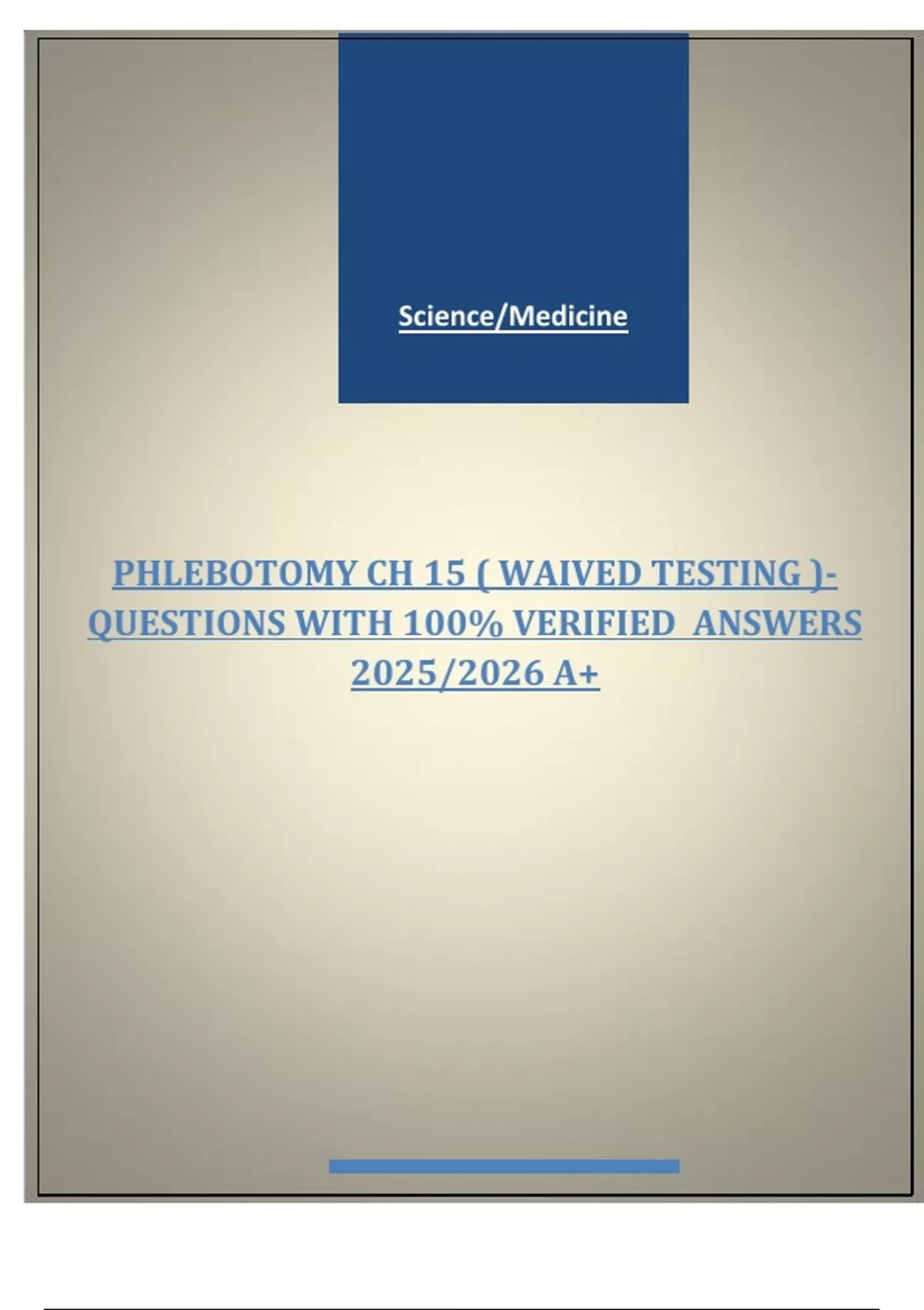 PHLEBOTOMY CH 15 ( WAIVED TESTING )- QUESTIONS WITH 100% VERIFIED ANSWERS 2025/2026 A+