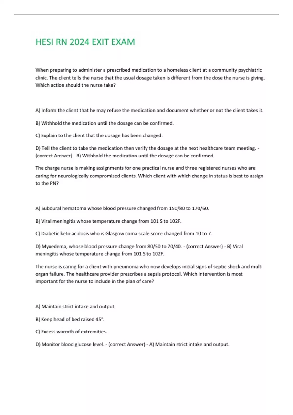 The nurse is caring for a client with pneumonia who now develops initial signs of septic shock and multi