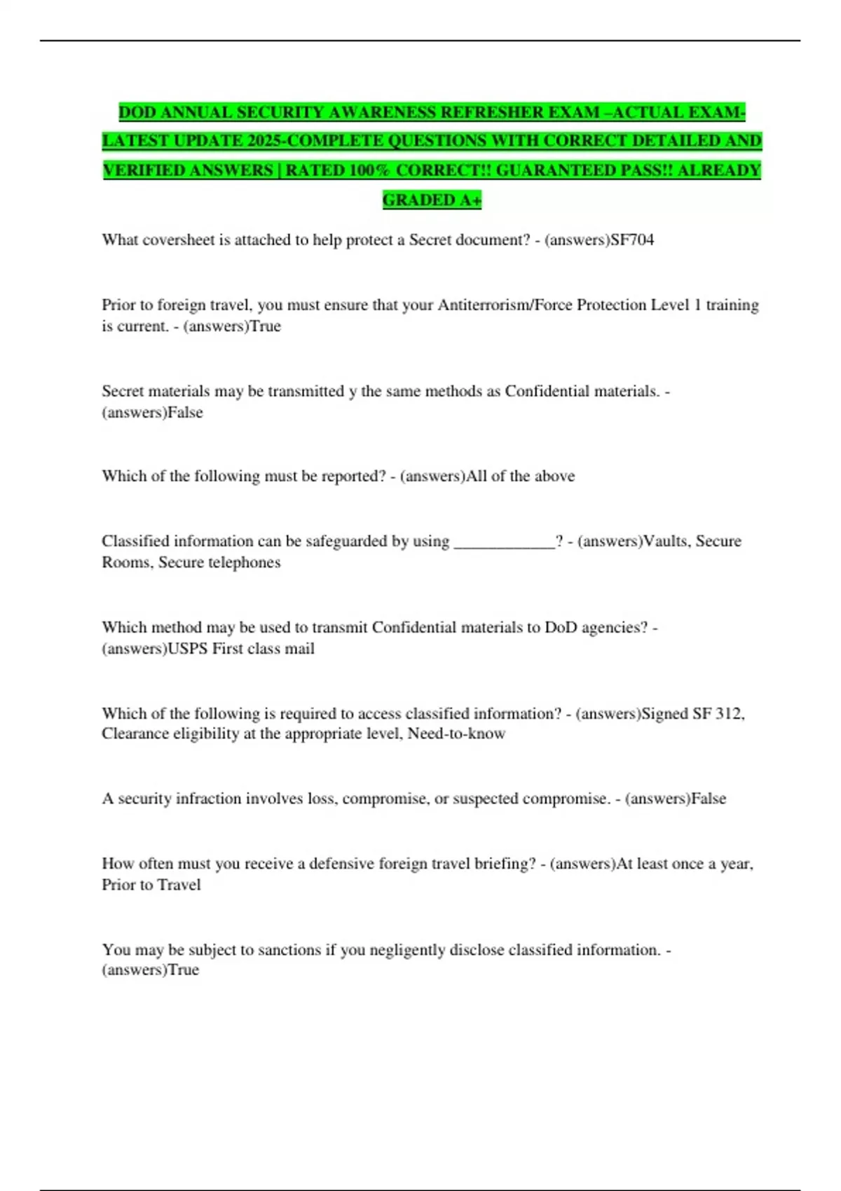 Which of the following is required to access classified information? - (answers)Signed SF 312,