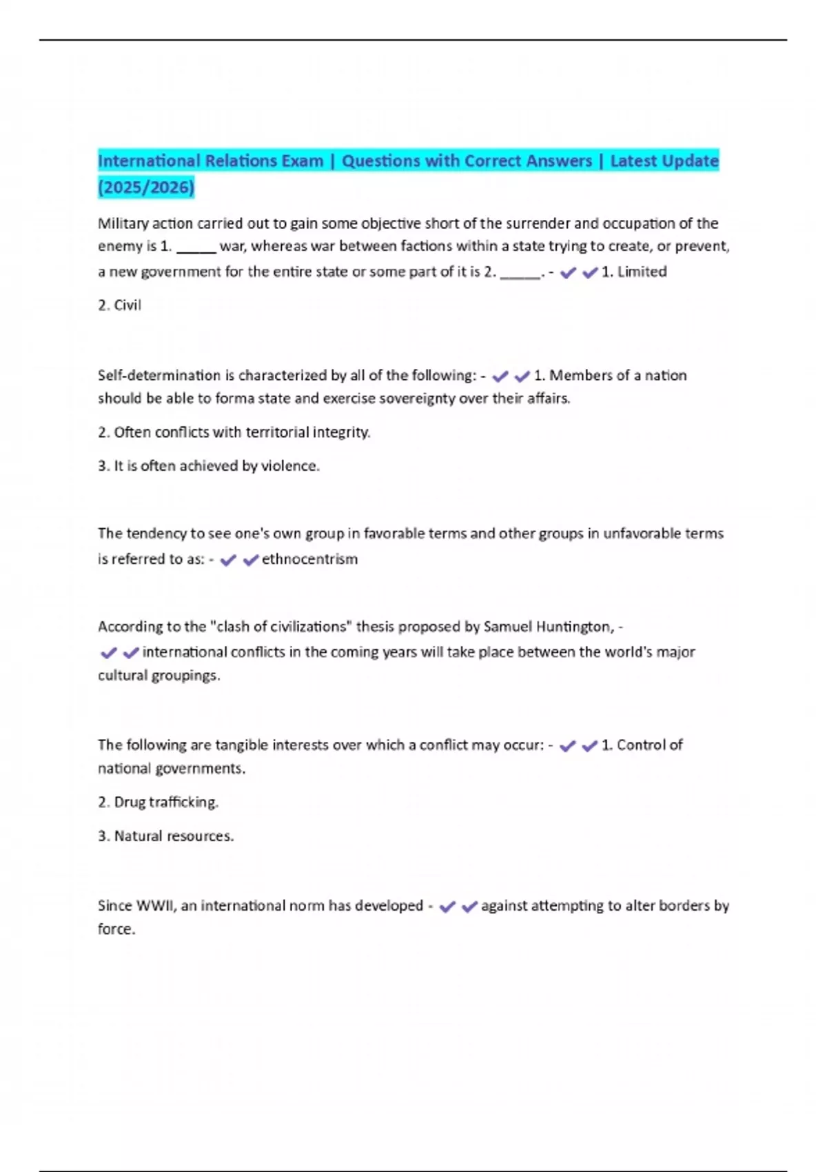 International Relations Exam | Questions with Correct Answers | Latest Update (2025/2026)