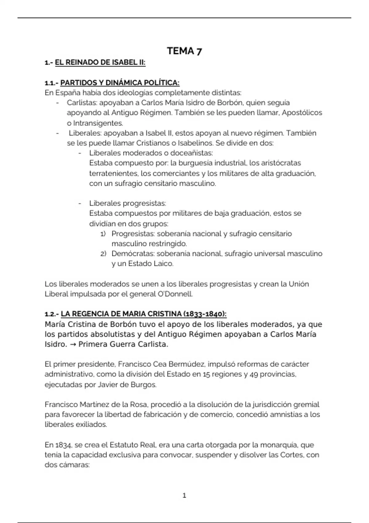 1.2.- LA REGENCIA DE MARIA CRISTINA (1833-1840):