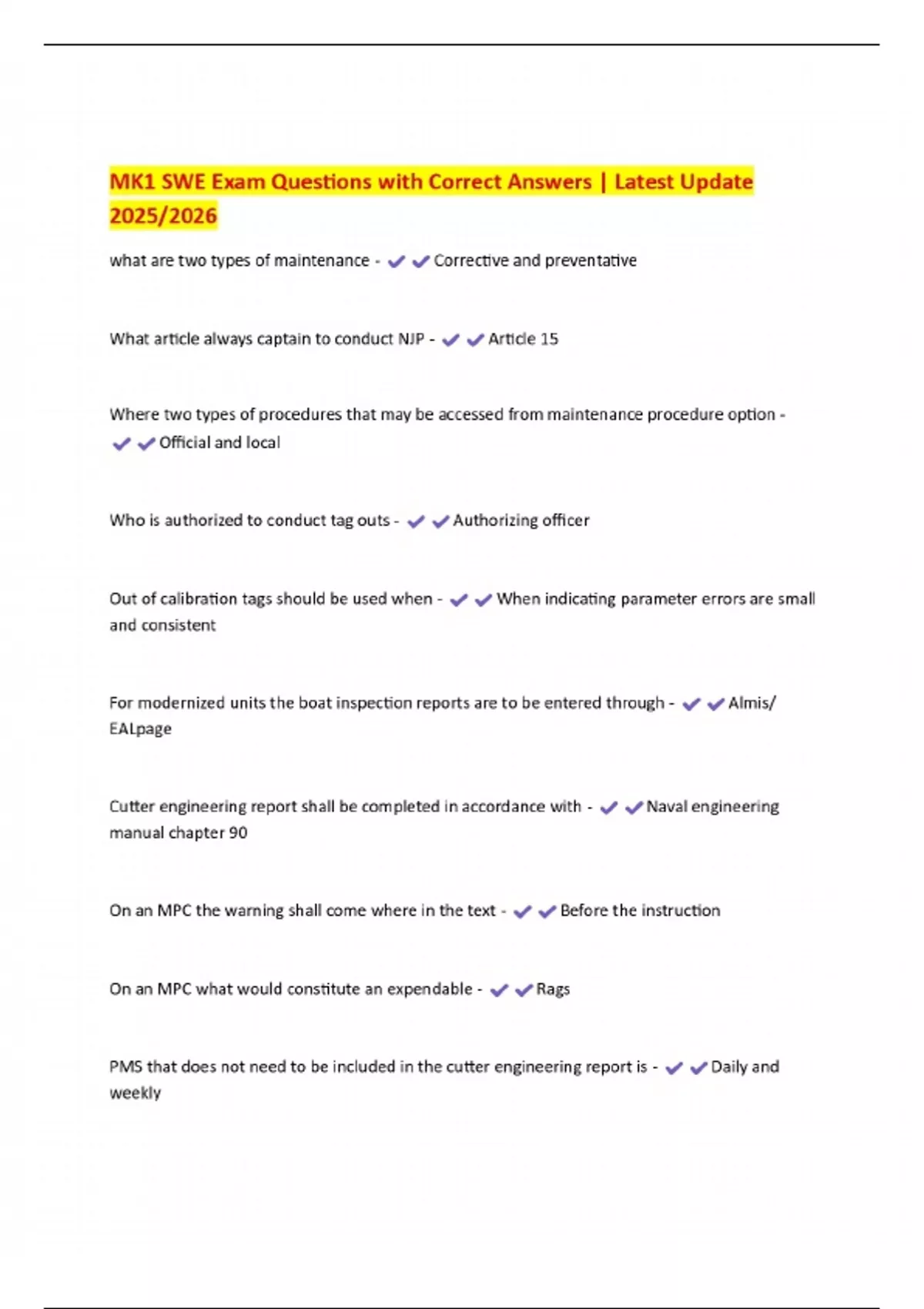 MK1 SWE Exam Questions with Correct Answers | Latest Update 2025/2026