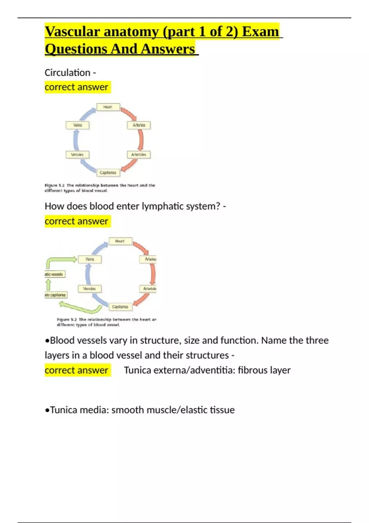 Vascular anatomy (part 1 of 2) Exam Questions And A