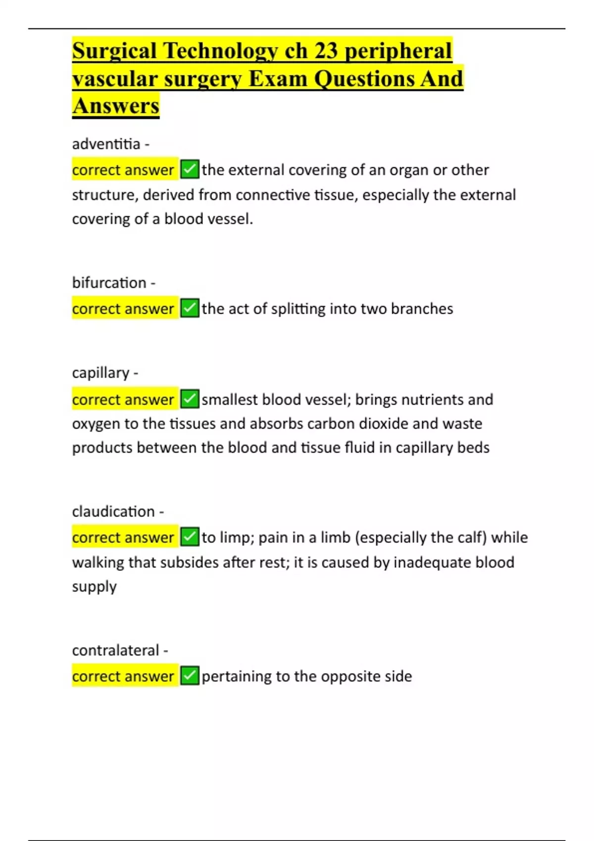 Surgical Technology ch 23 peripheral vascular surgery Exam Questions And Answers.docx
