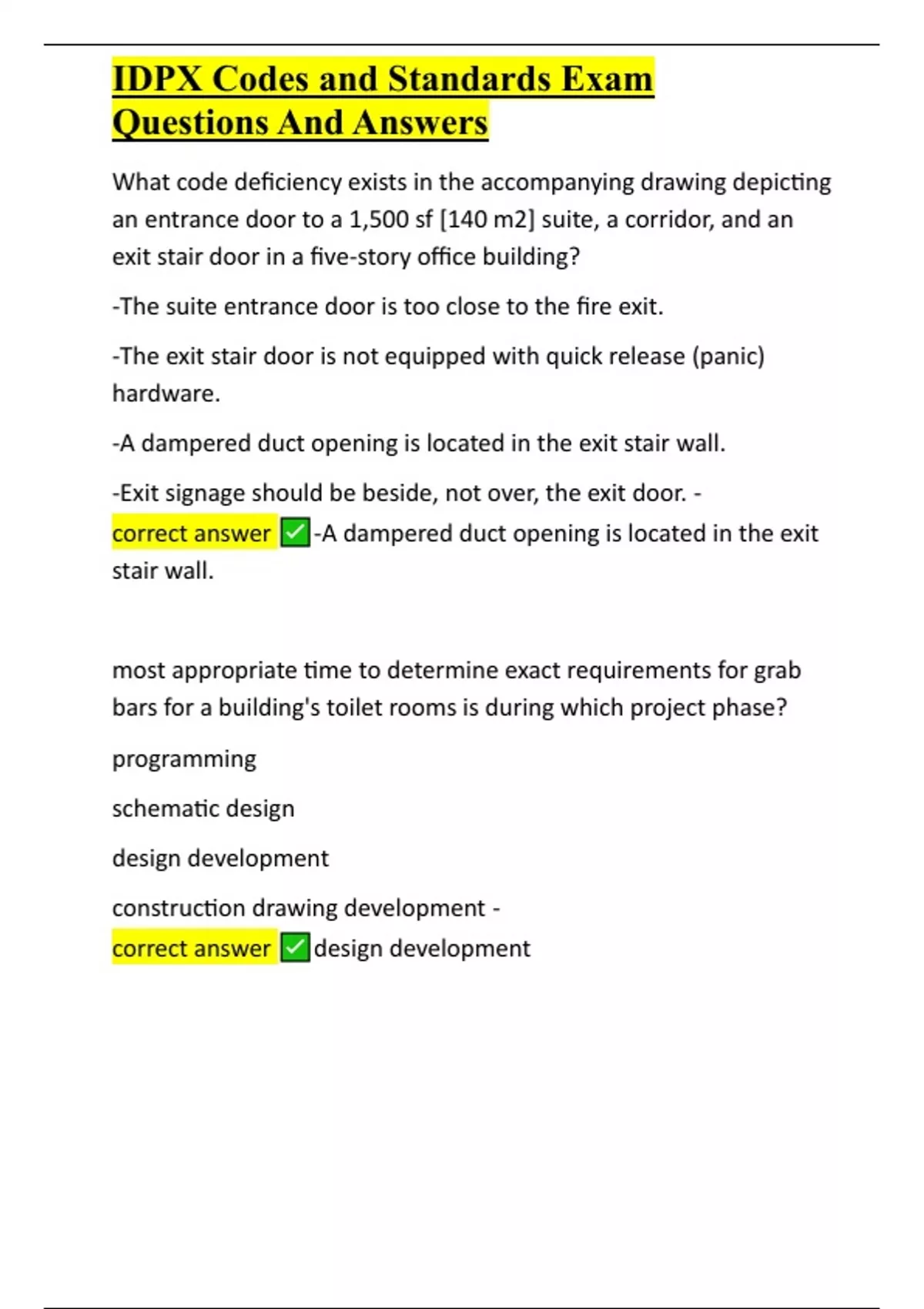 IDPX Codes and Standards Exam Questions And A