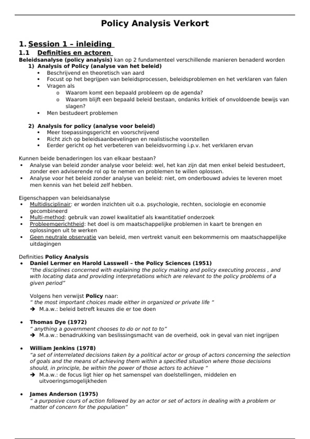 omvattend inzicht in beleidsvorming en -uitvoering. Verschillende theorieën als lenzen omdat iedere