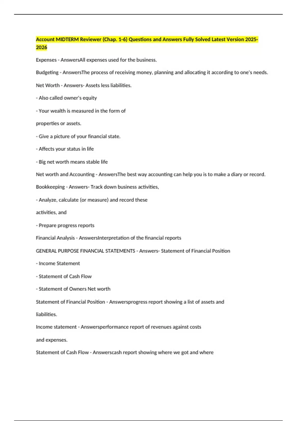 GENERAL PURPOSE FINANCIAL STATEMENTS - Answers- Statement of Financial Position