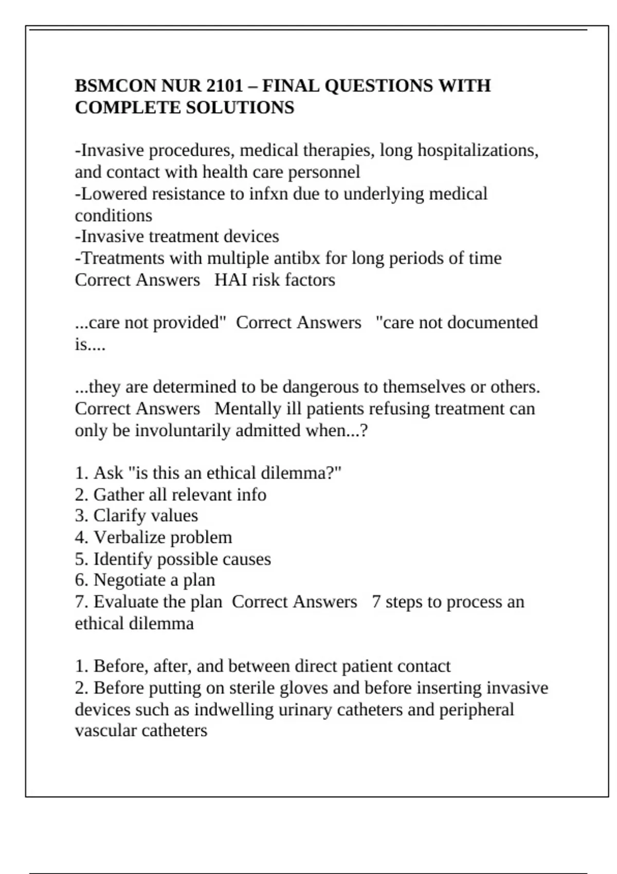 BSMCON NUR 2101 – FINAL QUESTIONS WITH COMPLETE SOLUTIONS