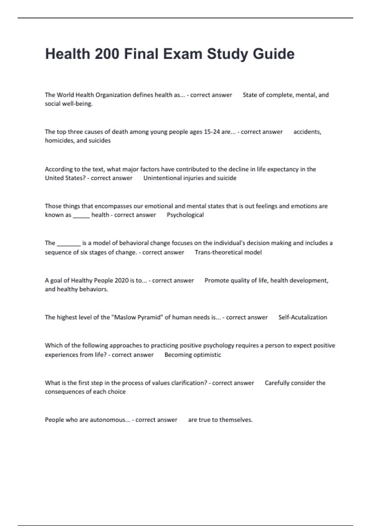 The World Health Organization defines health as... - correct answer State of complete, mental, and
