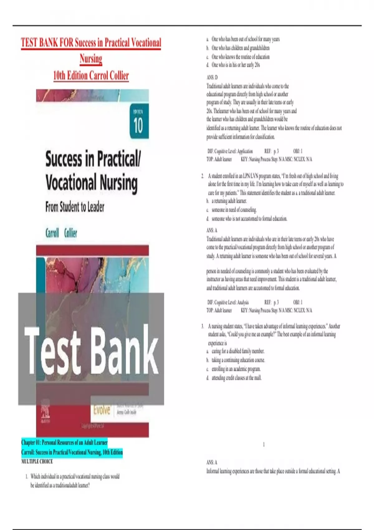 TEST BANK FOR Success in Practical Vocational Nursing 10th Edition Carrol CollierTEST BANK FOR Success in Practical Vocational Nursing 10th Edition Carrol CollierTEST BANK FOR Success in Practical Vocational Nursing 10th Edition Carrol Collier