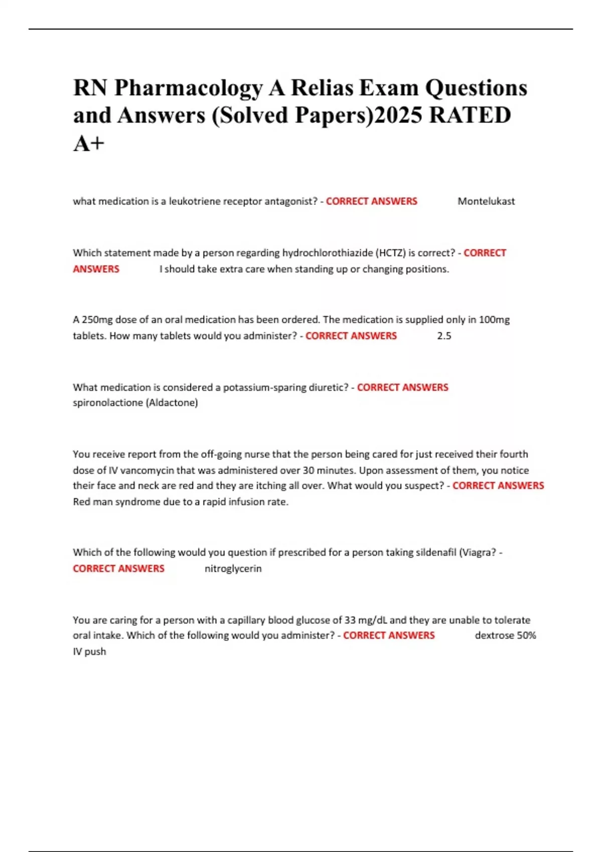 RN Pharmacology A Relias Exam Questions