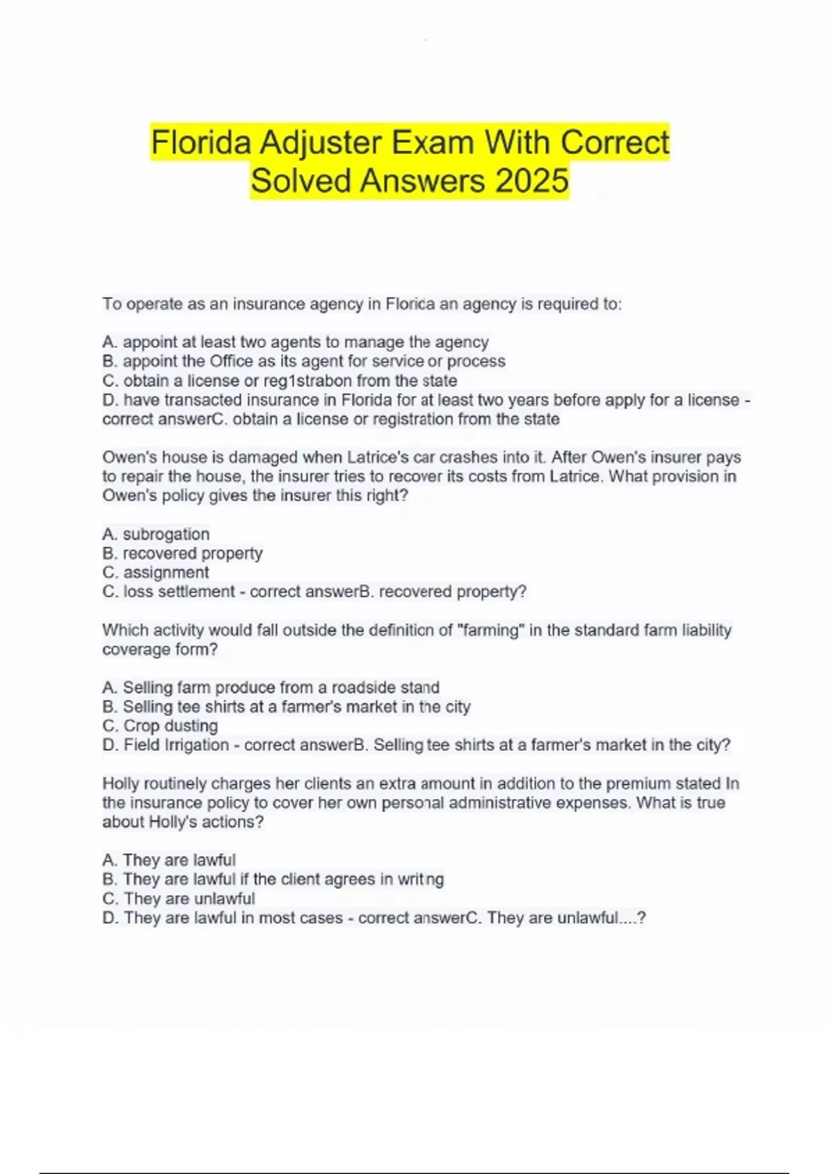 Florida Adjuster Exam With Correct Solved Answers 2025Florida Adjuster Exam With Correct Solved Answers 2025Florida Adjuster Exam With Correct Solved Answers 2025Florida Adjuster Exam With Correct Solved Answers 2025Florida Adjuster Exam With Correct Solved Answers 2025Florida Adjuster Exam With Correct Solved Answers 2025Florida Adjuster Exam With Correct Solved Answers 2025