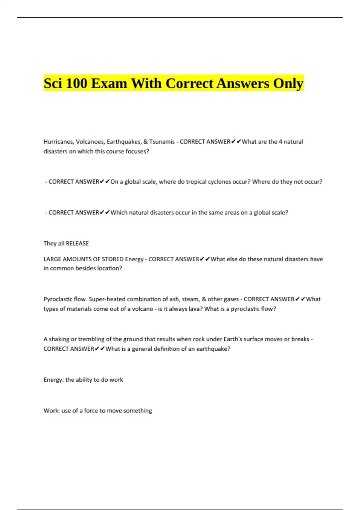 Sci 100 Exam With Correct Answers OnlySci 100 Exam With Correct Answers Only