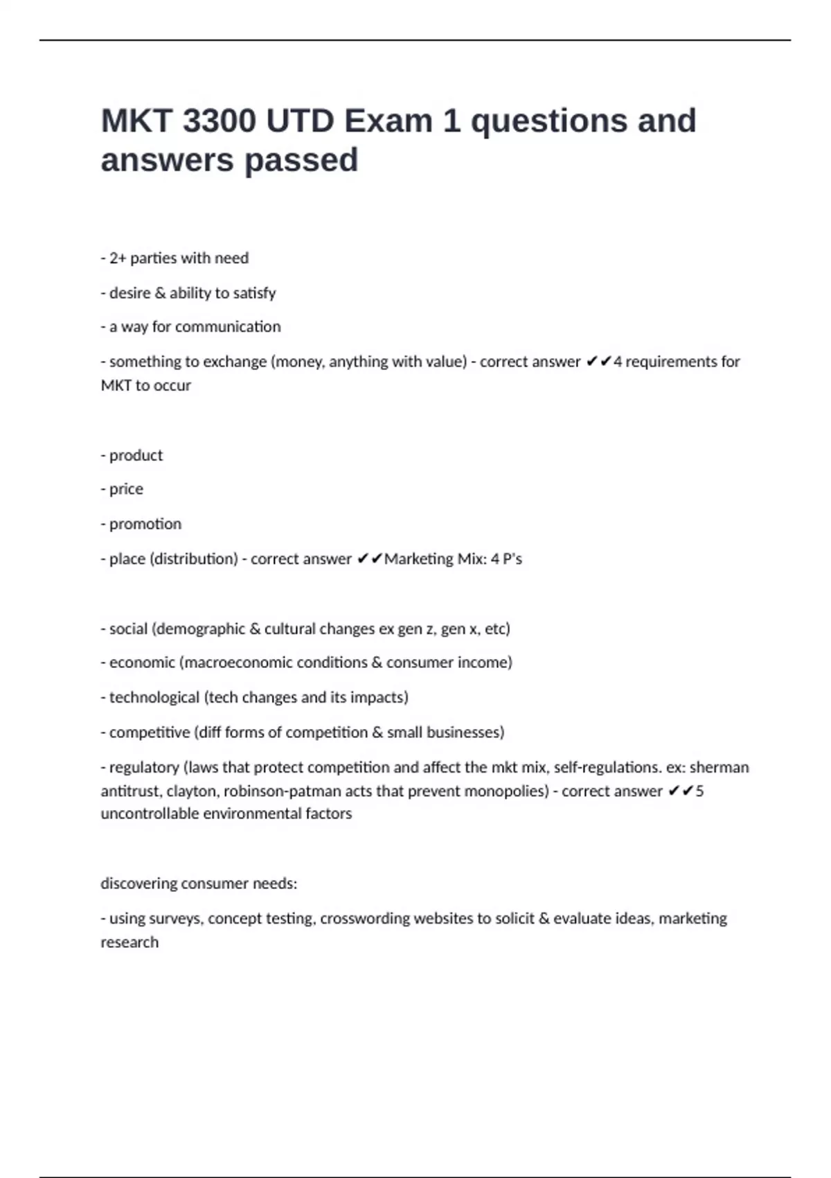 MKT 3300 UTD Exam 1 questions and answers passed